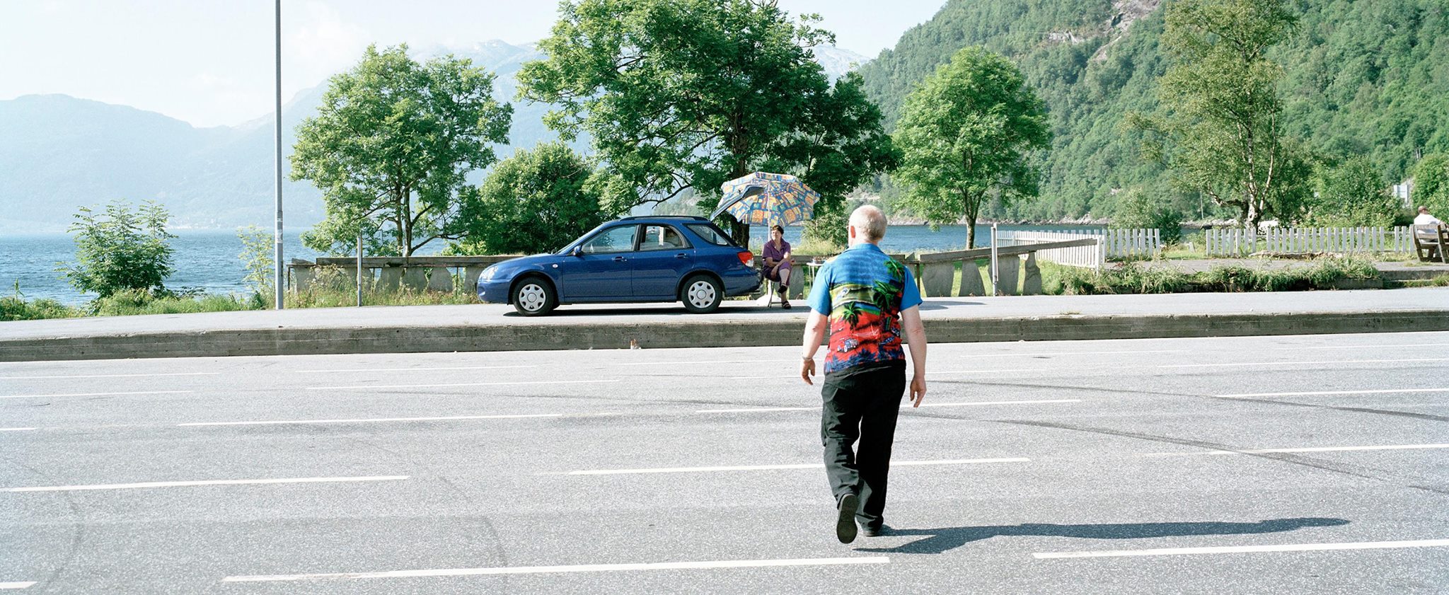 Klakegg sine fotografier skildrer med et skråblikk de fascinerende absurde, men likevel kjente omgivelsene våre på Vestlandet; fra fargerike folkemengder på søndagstur i storslått natur til nærmest kamuflerte mennesker i monotone bymiljø.
