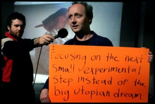 Wren og De Buysser er begge skribenter og scenekunstnere. Wren har vært i Bergen flere ganger og er nå også aktuell med performanceforedraget 20 Quotations på høstens program. Pieter De Buysser startet teaterkompaniet Lampe, som har navn etter tjeneren til filosofen Kant, og har skrevet manus for flere europeiske teaterkompanier.