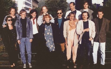 Forutan å ha arbeidd som lærar ved Skrivekunstakademiet (han med solbrillene i sentrum av biletet), kan Ragnar Hovland skilte med eit stort og populært forfattarskap.