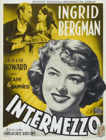 Intermezzo. Regi: Gustaf Molander. Sverige 1936. Manus: Gösta Stevens og Gustaf Molander. Foto: Åke Dahlqvist. Musikk: Svensk Filmindustris orkester. Klipp: Oscar Rosander. Medv.: Ingrid Bergman, Gösta Ekman, Inga Tidblad, Erik Berglund, Hugo Björne m.fl. Utleie: SFI. Svensk tale, engelske undertekster. DCP, s/hv, 1 t 33 min.