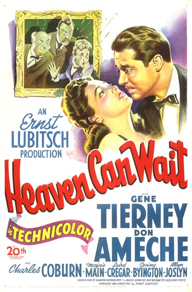 Heaven Can Wait. Regi: Ernst Lubitsch. USA 1943. Manus: Samson Raphaelson, etter et teaterstykke av Leslie Bush-Fekete. Foto: Edward Cronjager. Musikk: Alfred Newman. Klipp: Dorothy Spencer. Medv.: Gene Tierney, Don Ameche, Charles Coburn, Marjorie Main m.fl. Utleie: Cinematekene i Norge. Engelsk tale, utekstet. DCP, farger, 1 t 52 min.