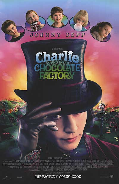 Charlie and the Chocolate Factory. Regi: Tim Burton. USA 2005. Manus: John August, etter en roman av Roald Dahl. Foto: Philippe Rousselot. Musikk: Danny Elfman. Klipp: Chris Lebenzon. Medv.: Johnny Depp, Freddie Highmore, Helena Bonham Carter, Sandra Darnell, James Fox, Deep Roy, Jordan Fry, Christopher Lee m.fl. Uteie: NB. Engelsk tale, norske undertekster. 35mm, farger, 1 t 55 min.