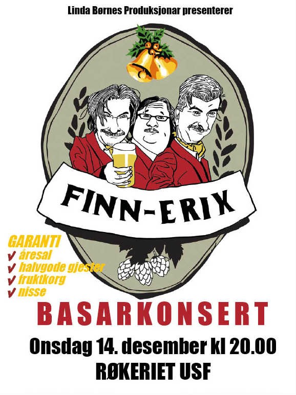 Likevel, det er ingen grunn til å gløyme det trufaste heimepublikummet. Difor flyttar Finn-Erix med husorkester, gjestar og årer til staselige USF Verftet og skjenker Bergen nok ein musikalsk julebasar.