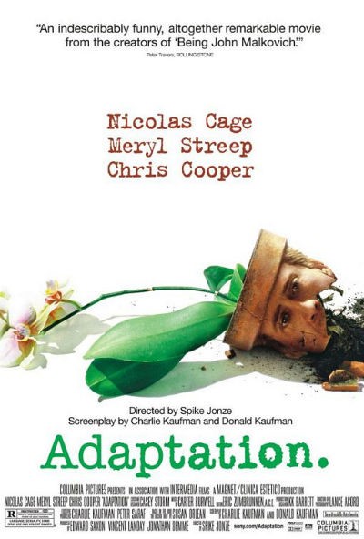 Adaptation. Regi: Spike Jonze. USA 2002. Manus: Charlie og Donald Kaufman, etter Susan Orleans roman «The Orchid Thief». Foto: Lance Acord. Musikk: Carter Burwell. Klipp: Eric Zumbrunnen. Medv.: Nicolas Cage, Tilda Swinton, Meryl Streep, Chris Cooper, Jay Tavare, Jim Beaver m.fl. Engelsk tale, utekstet. DCP, farger, 1 t 54 min.